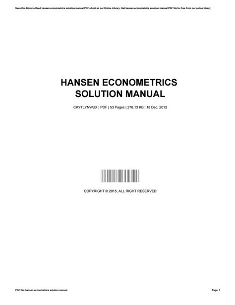 Read Online hansen-econometrics-solution-manual Doc BookBoon